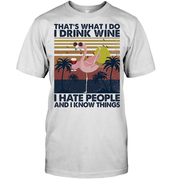 That'S What I Do I Drink Wine I Hate People And I Know Things Flamingo Sunset Vintage T Shirt